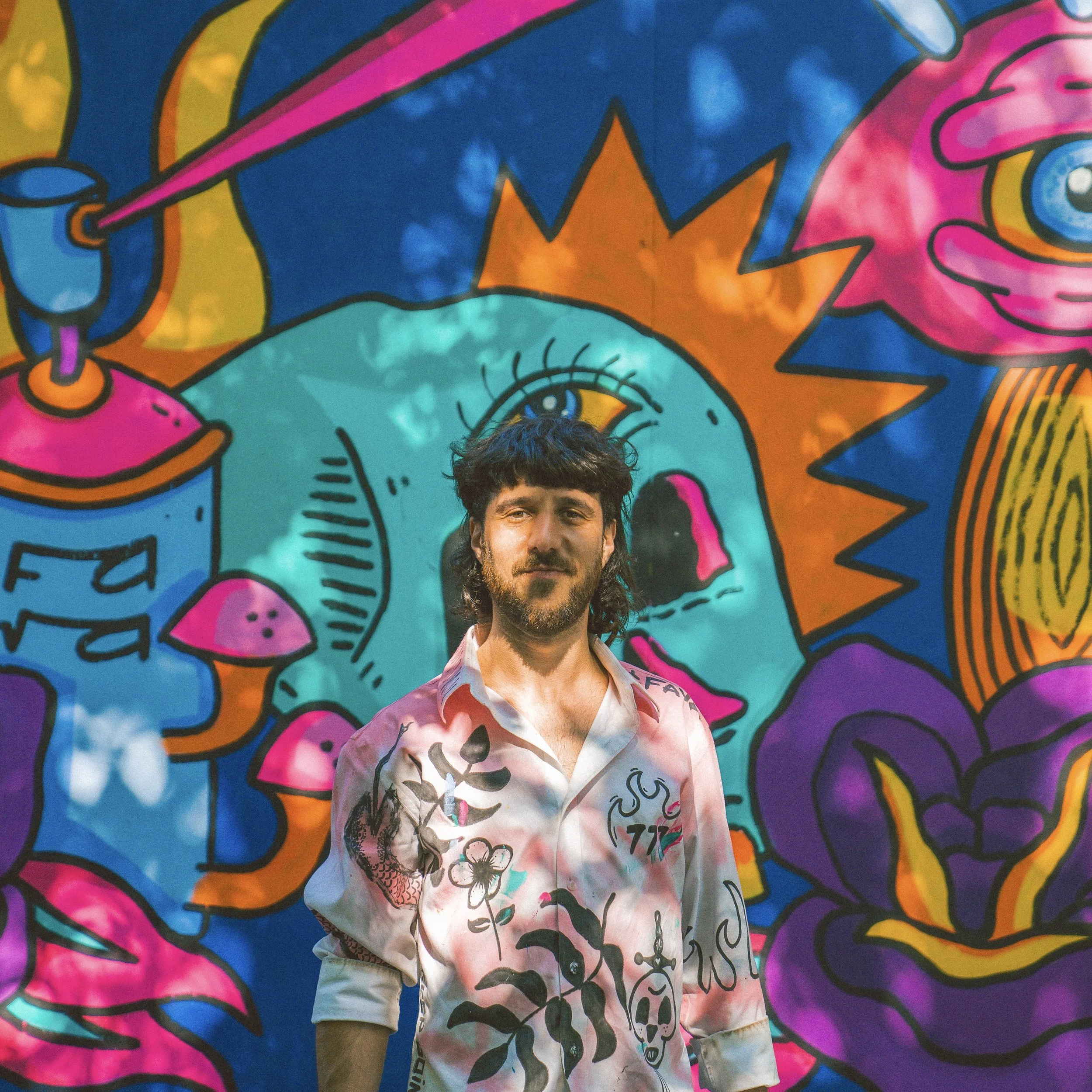 Along the way, he developed a surreal-pop and dreamlike style that blends vivid colors, ancestral symbolism, and natural elements such as mushrooms, plants, and the cosmos. His work—spanning murals, fine art, digital illustration, and clothing interventions—seeks to open portals of imagination in both public and intimate spaces.